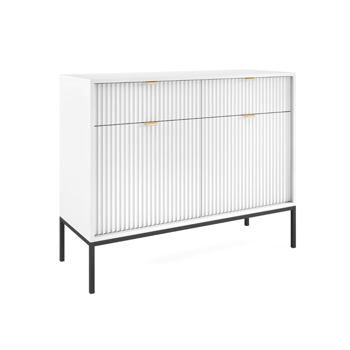 Ova komoda je više od običnog komada namještaja - ona je multifunkcionalni organizator koji odgovara vašim potrebama. Bilo da ga koristite kao deo dnevnog boravka, spavaće sobe ili kancelarije, NOVA komoda će doneti stil, red i praktičnost u vaš prostor, uz dodatni dodir luksuza zahvaljujući crnim metalnim nogama i zlatnim ručkicama.