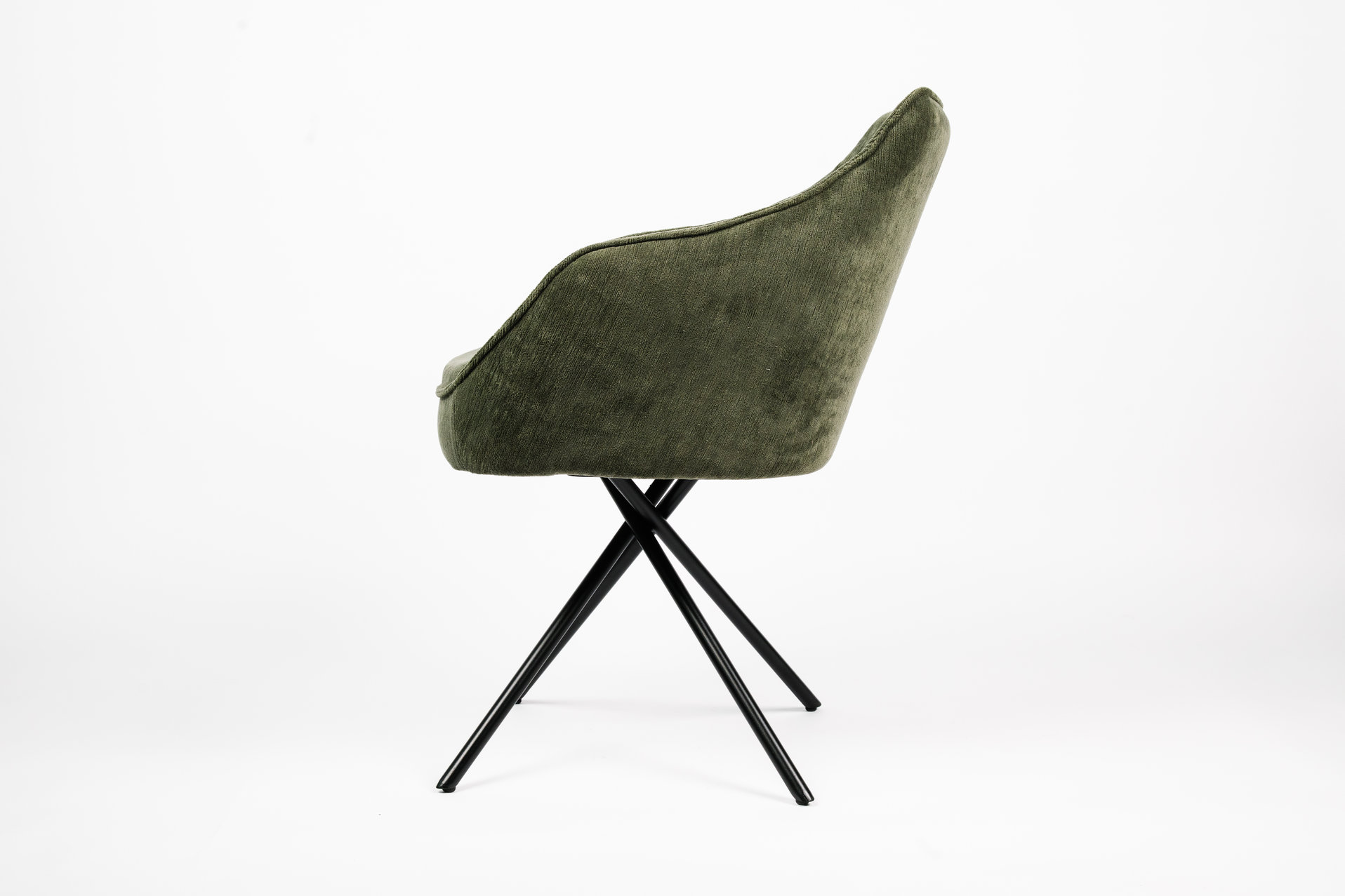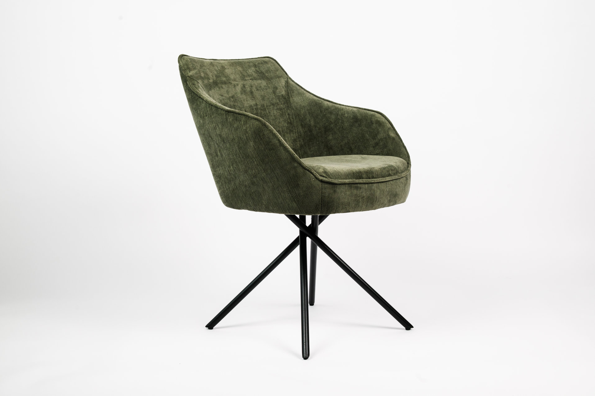 Moderni kontrast materijala: Bogato tapacirano sjedište i naslon u kontrastu su sa vitkim, crnim metalnim nogama, što stolici daje "vazdušast" i savremen izgled.
