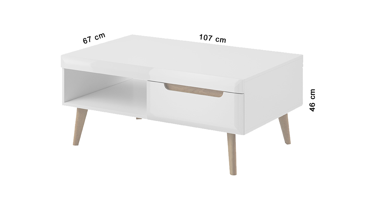 NORDI klub stolić - iznimnu eleganciju i univerzalizam u bijeloj boji s visokim sjajem ili boji dab artisan (hrast rivijera); čvrsta konstrukcija od najkvalitetnijih materijala pruža dugotrajnost i funkcionalnost vašem prostoru.