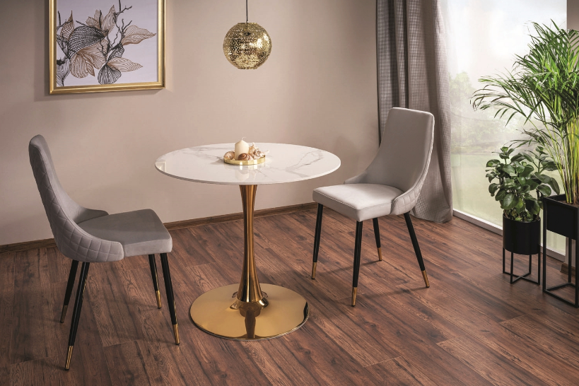 Moderna trpezarijska stolica jednostavnog dizajna koja će se savršeno uklopiti u vaš dom. Stolica je presvučena kvalitetnom tkaninom.