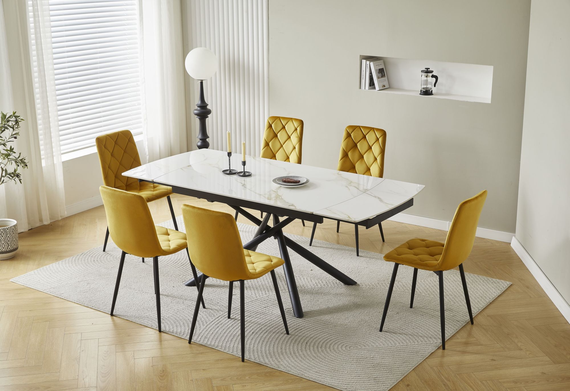 Integrisani mehanizam na razvlačenje: Skriven unutar gornje ploče, ovaj sistem omogućava lako proširenje stola, čineći ga idealnim za prostore koji zahtijevaju fleksibilnost (od porodičnog ručka do svečane večere).