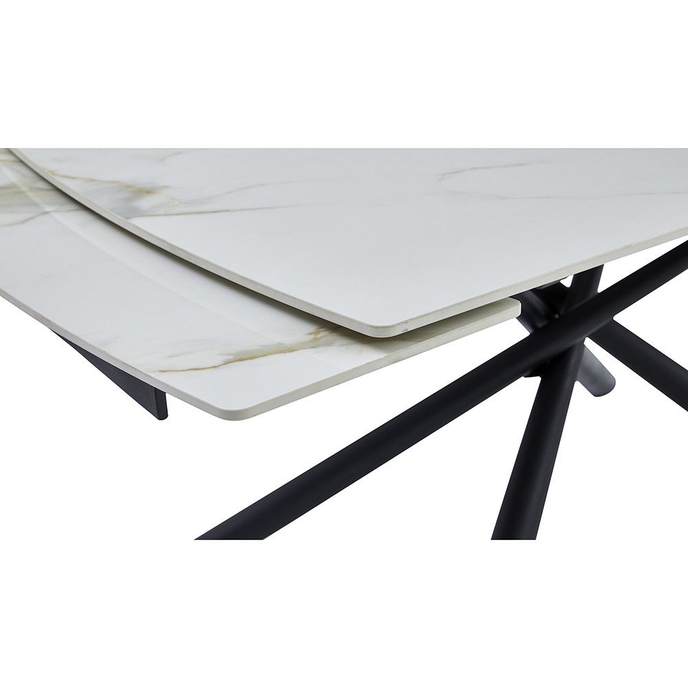 "V-Shape" centralna baza: Masivni centralni stub postavljen na elegantnu metalnu ploču daje stolu moderan, gotovo lebdeći izgled, istovremeno osiguravajući da sto ostane nepomičan čak i kada je potpuno razvučen.