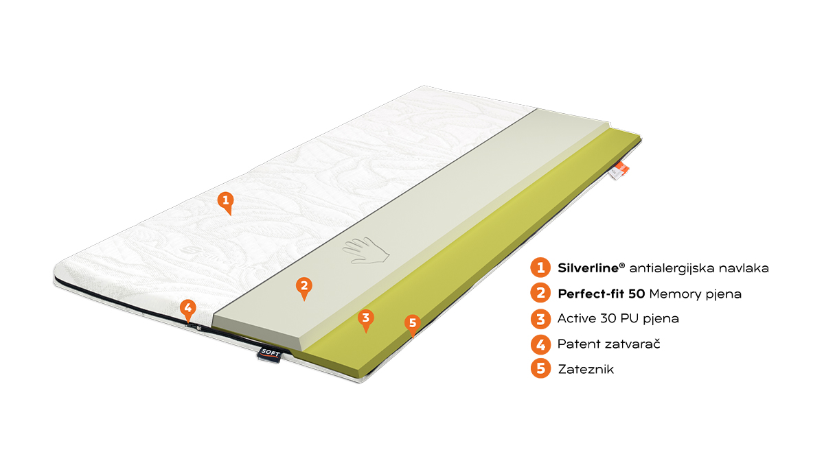 Zamislite idealan nadmadrac koji pamti vaš oblik tijela i oblikuje se prema njemu, upravo gledate u jedan takav. Postižući efikasnu raspodjelu težine tijela, idealan je za svaki dom. Posjeduje perivu navlaku kao i duo nivo udobnosti - nekana i tvrda strana madraca, što omogućava potpuni prilagodbu.