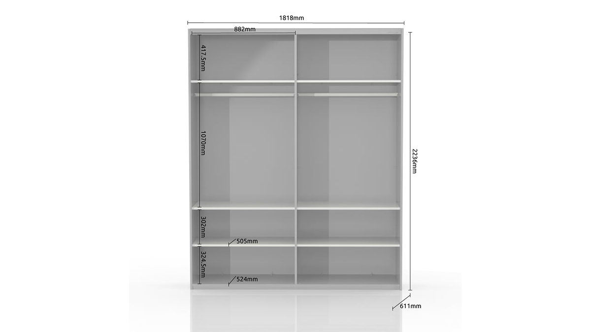 Dva krila i bočne stranice kliznog plakara su lakirane UV lakom, pružajući mu visok sjaj i privlačan izgled. Unutrašnjost plakara nudi 6 fahova i 2 garderobne šipke, osiguravajući vam dovoljno prostora za organizaciju vaše odjeće i stvari.